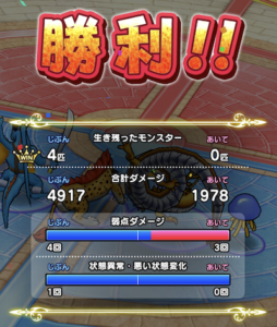 Dr.マモリーノのパーティは、イオ属性の攻撃が多いので、イオ耐性が高いモンスターを集めてみたら(スカイドラゴンは-25%でしたが)勝てました。